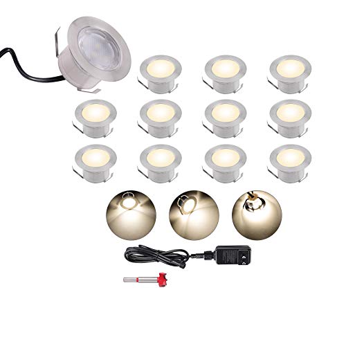 Amazing 🔥 Recessed LED Deck Light Kits,Choose Size Φ1.78,12Pack Step Lights Kits In Ground Outdoor LED Landscape Lighting IP67 Waterproof, 12V Low Voltage for Garden,Yard Steps,Stair,Patio,Floor,Deck Railings